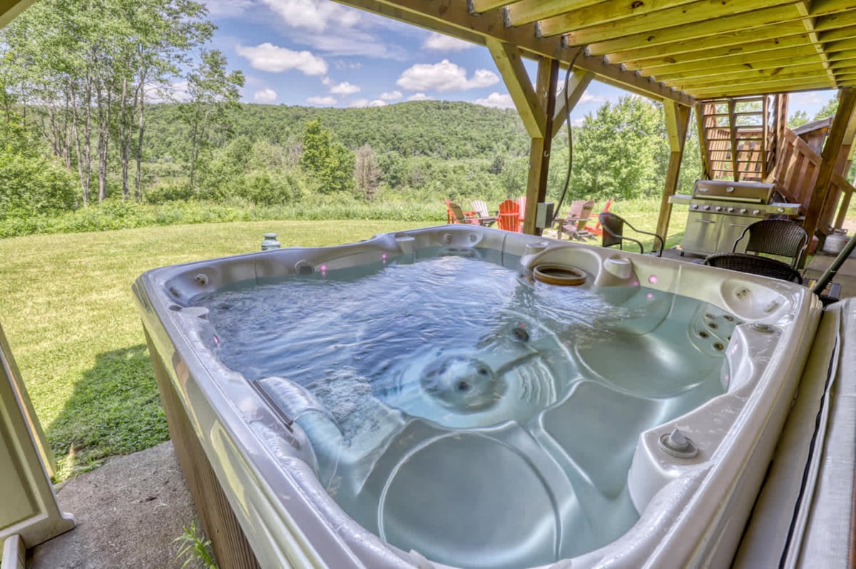 62 acres of secluded bliss high in the hills of Ellicottville w/therapeutic views across the valley. Swim in the sparkling spring-fed pond, mountain bike, hike or cross country ski through the private wooded groomed trails. Enjoy the sparkling night stars from the hot tub and kick back with friends at a bonfire. Forget the stress of traditional vacationing, restaurant reviews, & tourist traps. Recharge your battery & enjoy the freedom to reconnect with what and who makes you the happiest.