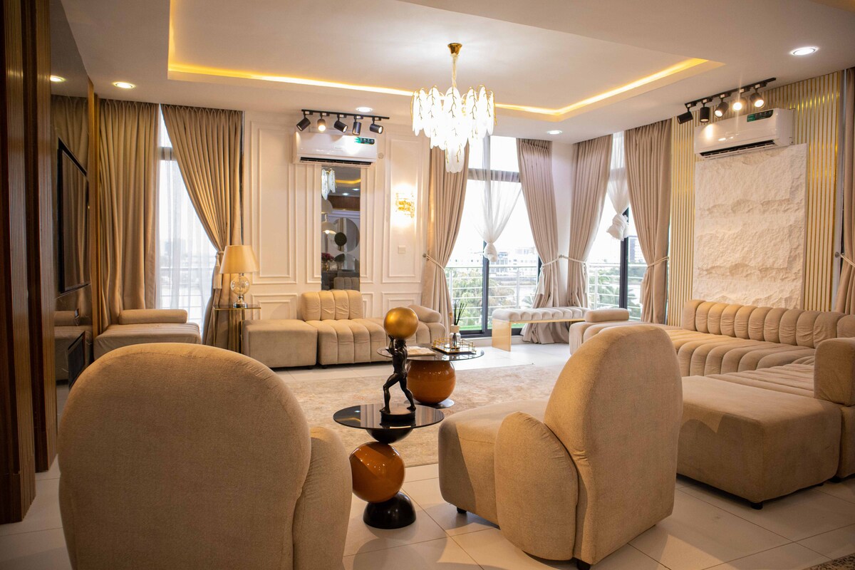 We’re thrilled to introduce STAYS BY TAGUS, our luxurious shortlet apartment nestled in the secure and tranquil surroundings of Lekki, Lagos. This exquisite 3-bedroom penthouse suite is located within the exclusive Pinnock Beach Estate. With lush greenery, the stunning 180-degree terrace balcony overlooking the Lagoon, is a perfect spot for an evening drink. Experience comfort and elegance in a setting designed for relaxation. We look forward to hosting you!