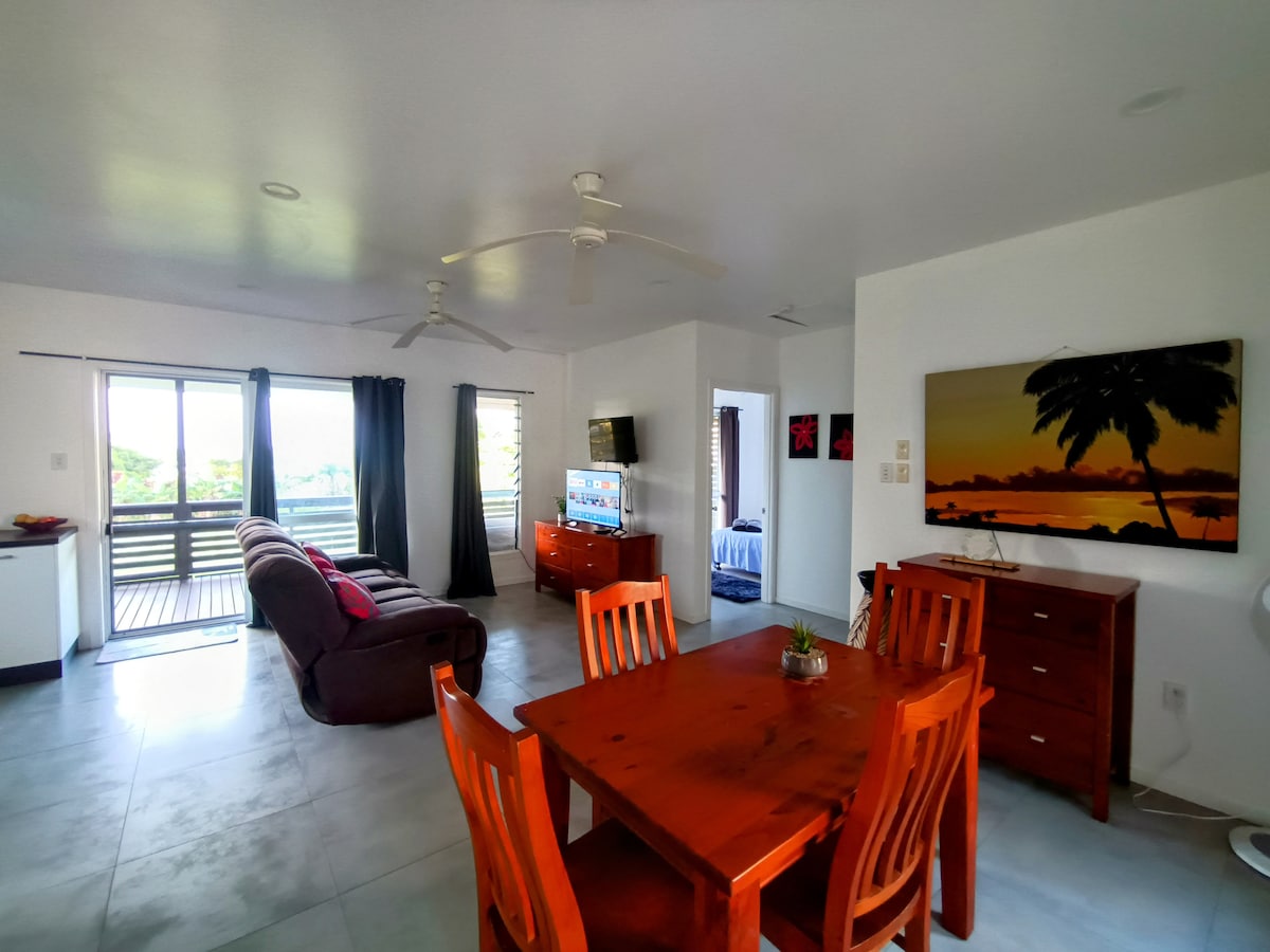 „Üdvözlünk a tökéletes kiruccanásodon” A repülőtértől és a városközponttól egyaránt mindössze 5 percre található hangulatos, két hálószobás egység ideális hely. A legközelebbi strand és éjjel-nappali kisbolt mindössze 2 perc autóútra található. A modern kényelmi szolgáltatások közé tartozik a korlátlan Starlink Wi-Fi, a tévé, a mosógép és minden alapvető kellék az ujjbegyeidnél. Tökéletes azoknak a pároknak, akik menekülni szeretnének, vagy a sportrajongók imádni fogják, hogy sétatávolságra vannak a stadiontól. Gyere, fedezd fel Paradicsom