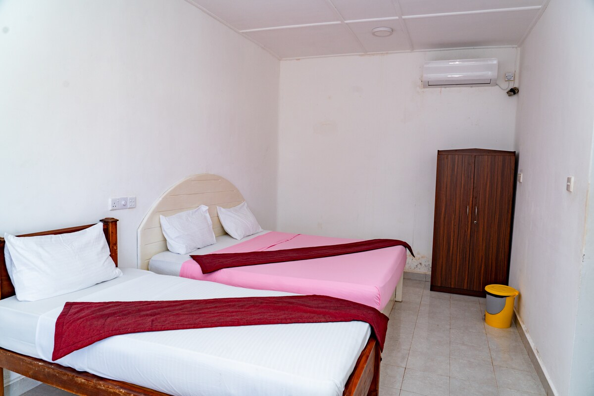 2 kétágyas szobánk van 2 mellékelt fürdőszobával, 1 konyhával és 1 nappalival. És vedd figyelembe, hogy az úszómedence nincs a helyszínen 55 méterre volt az ingatlantól, és a strand előtt található. Mindkét szoba légkondicionálója benne van az árban, de a Hall AC használatához napi 4000LKR további díjat kell fizetned Köszönjük!