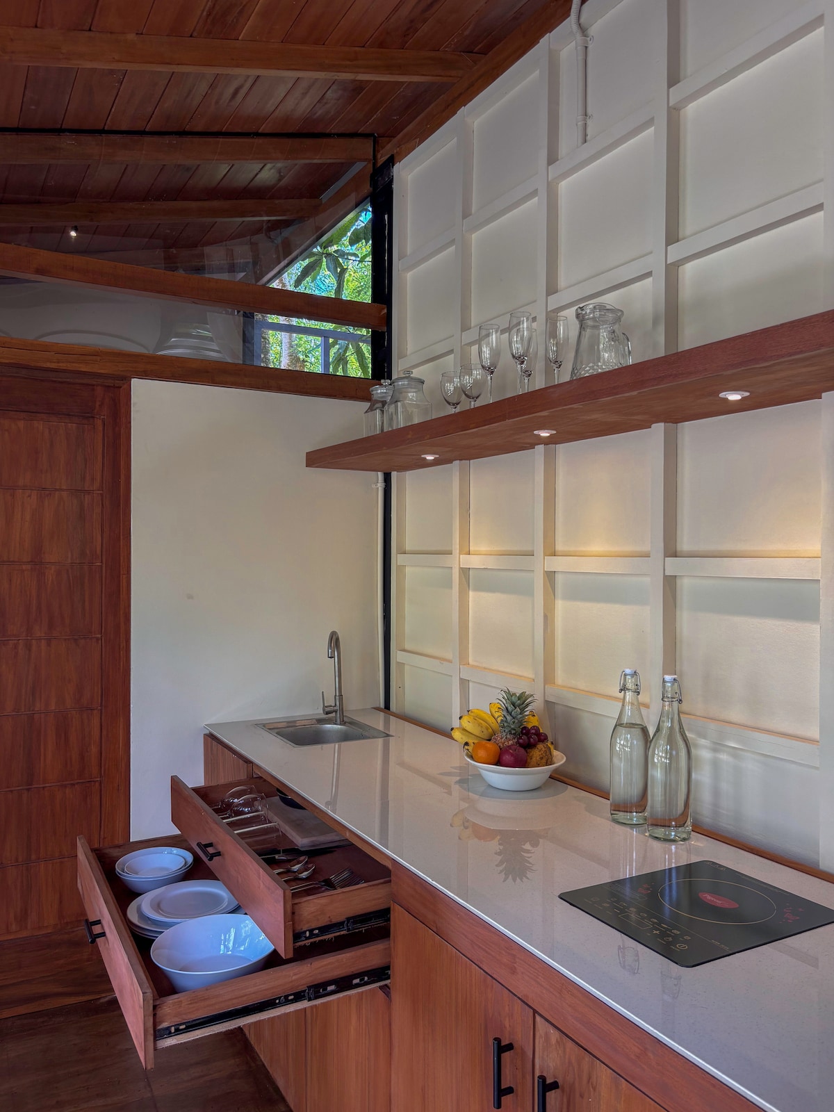 Sunyata Nilwella is a 3-bedroom, 3-bathroom boutique beach house set within its own private cove, overlooking a small island and a secluded beach just steps away. Hidden in the tree canopy and sharing the shade of a Bodhi tree from the monastery next door, the home feels calm and deeply private. Fully equipped and thoughtfully designed, Sunyata is a peaceful sanctuary minutes from the cafés, surf, and energy of Hiriketiya Beach.