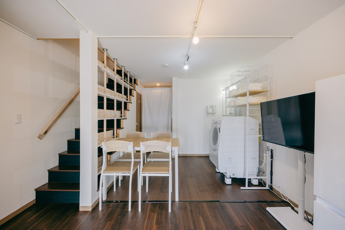 * Fontos A létesítménynek nincs parkolója. Számos fizetős parkoló található a közelben (24 óra: körülbelül 1000 jen) Tökéletes családi és csoportos használatra! A létesítmény jellemzői ① Személyzet nélküli működés, intelligens zár telepítve, Nem személyes érkezés és távozás ② A körülbelül 70 m ² -es privát bungaló legfeljebb 8 személy használhatja (legfeljebb 3 személy ára azonos) - Kiváló közlekedés, buszpályaudvar, belváros és Kumamoto kastély - mindez gyalogosan is elérhető ् Az épület 2018-ban épült, tiszta víz, vadonatúj felszerelés ् Tiszta ágynemű, amelyet szakemberek tisztítanak Teljesen felszerelt, ingyenes wifi, légkondicionáló, nagy ellenálló képességű matrac (3 franciaágy, 3 egyszemélyes matrac) A Kumamoto kastélyváros, egy gazdag történelemmel és hangulattal rendelkező város, Shinmachi. Ez a létesítmény 2 perces sétára található a Kumamoto City „Shinmachi” villamosmegállótól. Közel van a Sakuramachi buszpályaudvarhoz és a JR Kumamoto állomáshoz is, így kiváló hely a közlekedéshez. Sétálhatsz egyet, és megnézheted az egyes történelmi helyszíneket, beleértve a Kumamoto kastélyt is. Shimodori, Kumamoto legnagyobb belvárosi területe is sétatávolságra van, így nem lesz gond az evéssel vagy a vásárlással. Nyugodtan hazamehetsz, még akkor is, ha a lehető legteljesebb mértékben élvezed a helyi ételeket és a helyi szakét.