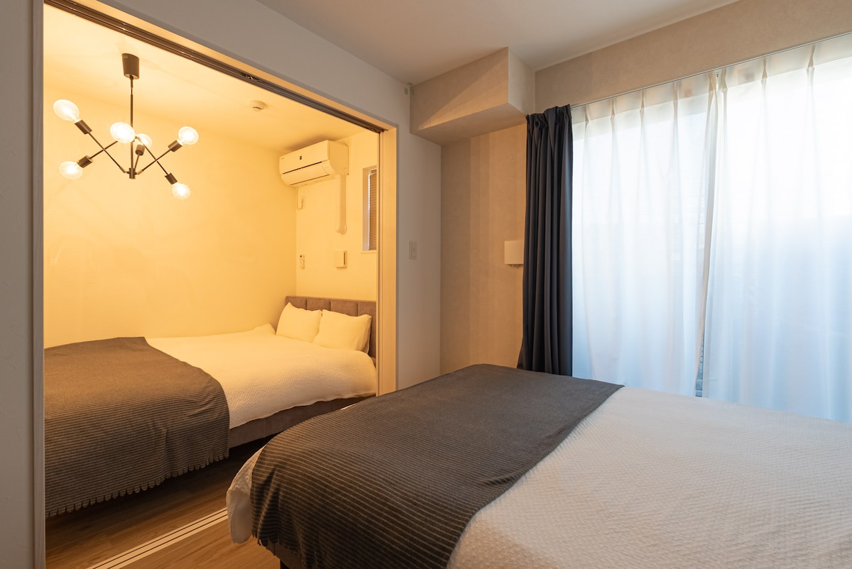 USJにも 大阪中心地(梅田、難波)にもすぐ近く !2寝室、6名!静かな立地で家族/グループ向け!