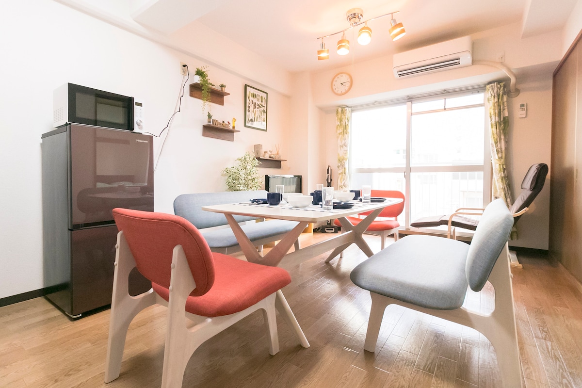 B:動物園前駅3分|6名・3寝室|難波、心斎橋、梅田まで便利!地下鉄&JR&南海利用可能!家電完備
