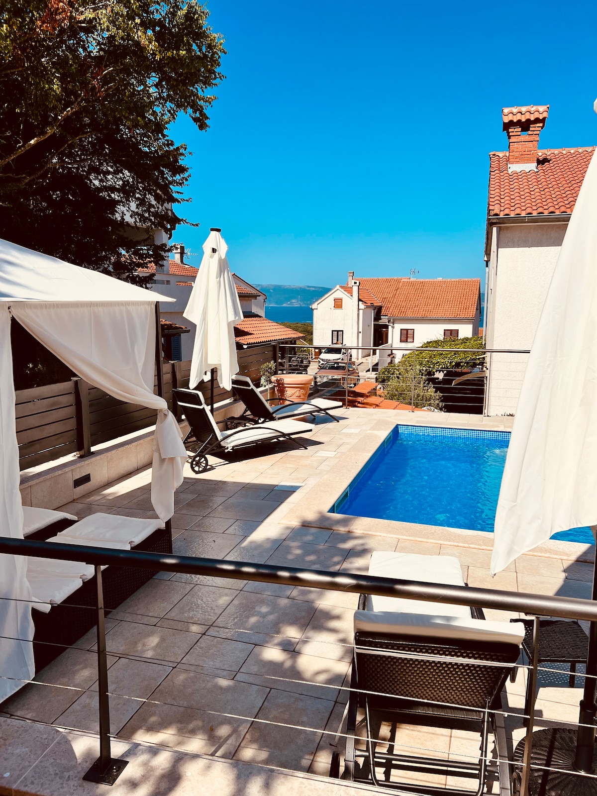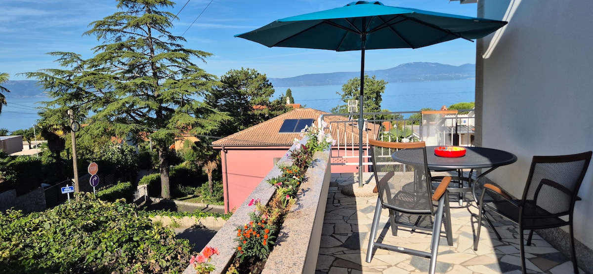 A lakás a második emeleten található, hatalmas terasszal, ahonnan akadálytalan kilátás nyílik a Kvarner-öbölre. Élvezheted ezt a látványos kilátást az étkezőből, a hálószobából és a másodlagos hálószobából. A strand mindössze 200 méterre található. A lakás a következőkből áll: Fő hálószoba kényelmes queen méretű ággyal A másodlagos hálószoba két egyszemélyes ággyal és egy íróasztallal rendelkezik Konyha étkezőasztallal. Fürdőszoba terasz és erkély Egy parkolóhely és wifi áll rendelkezésre, és ingyenesen használható.