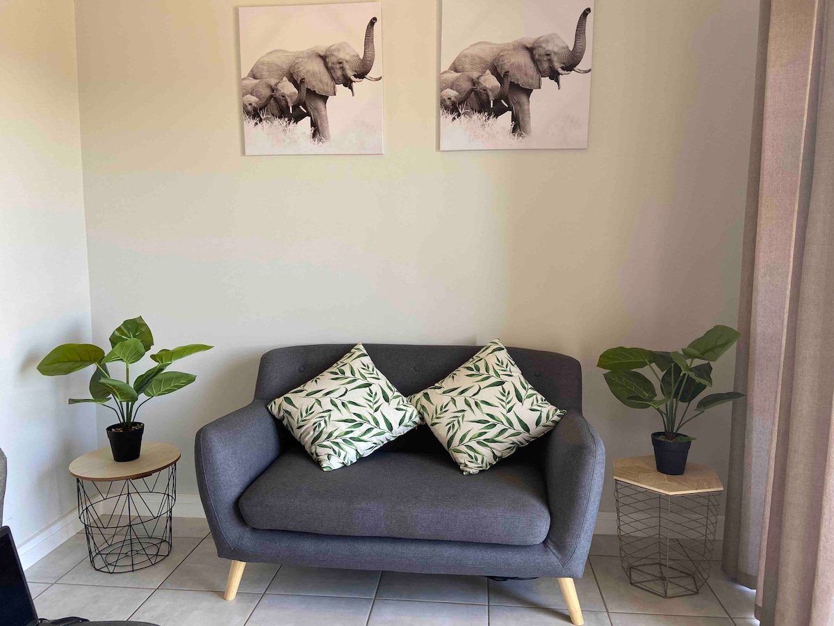 Peaceful private garden unit ideal for business travellers, couples, and small families. Enjoy fast Wi-Fi, solar backup power, dedicated workspace, secure parking, and full self-catering facilities in a quiet, safe neighbourhood. Spotlessly clean with complete privacy and no shared indoor spaces. Perfect for short or extended stays. Easy self check-in and check-out for a seamless, flexible experience.