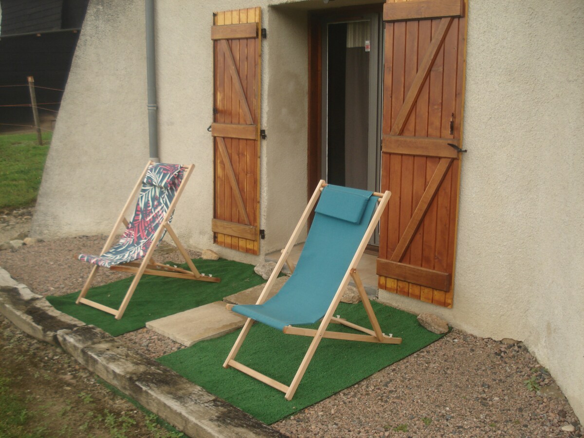 A Chaîne des Puysra és a Vichy-re nyíló panorámás legmagasabb pontjától mindössze 3 km-re található Lodge Belvédère egyedülálló élményt nyújt. A béke igazi menedéke meleg és kifinomult légkörrel van átitatva Világos, kényelmes, otthonos légkör, kívül nyitott, nyugodt, 2 függő terasz a nappali oldalán + a fürdőszoba pihenésre és elmélkedésre invitál. Teljesen felszerelt konyha, king-size ágy, wifi + Netflix TV Ingyenes, zárt parkolás a helyszínen