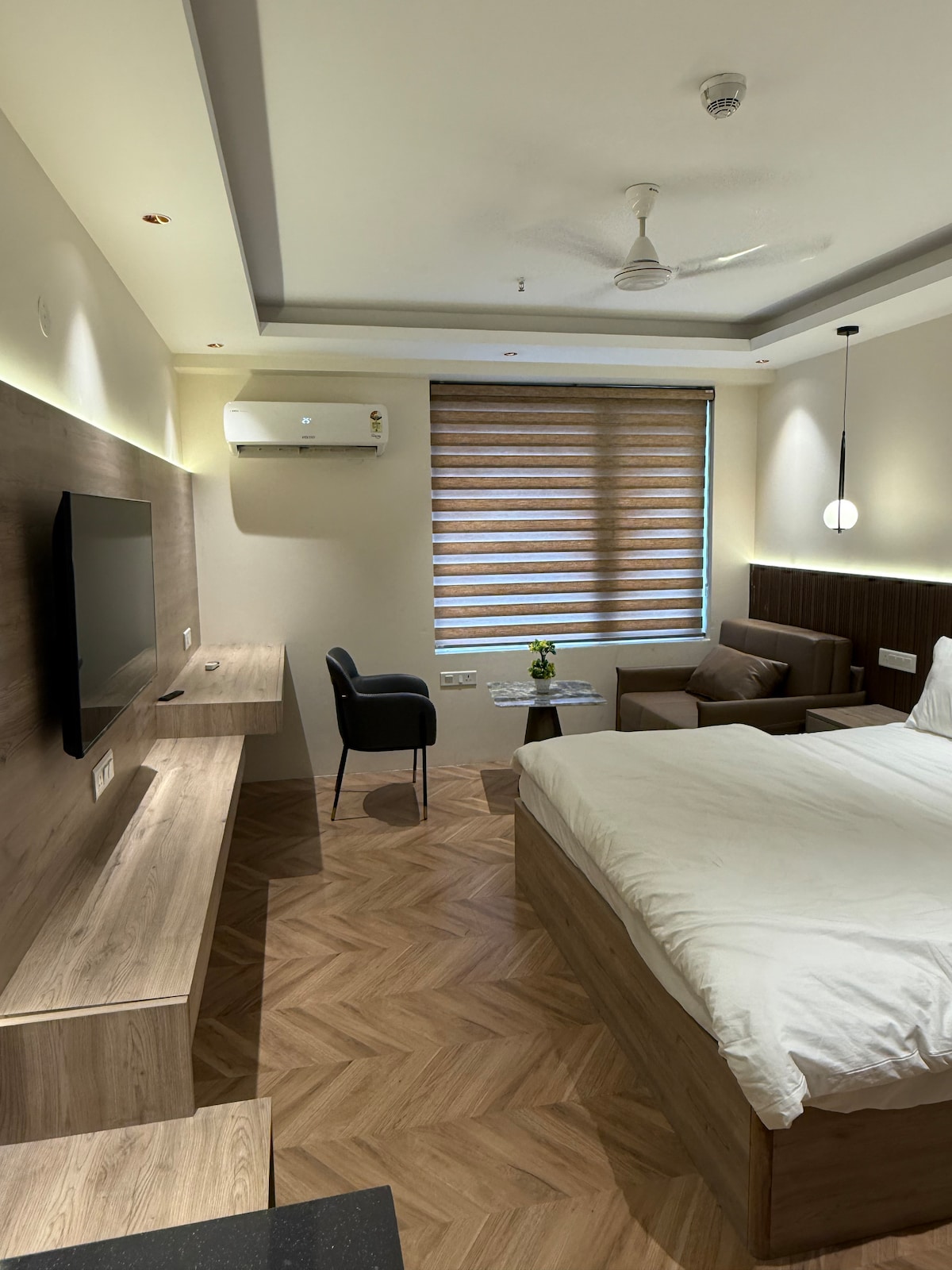 Modern, fully furnished apartment in the bustling Sector 104 market. Enjoy high-speed WiFi along with Netflix & other OTT. The complex offers free stilt parking, while inside you’ll find two bedrooms, two baths, TV lounge cum 3rd Bedroom (equipped with sofa-bed)dining hall, & fully equipped kitchen- shared laundry amenities. Step outside to explore 100+ restaurants, pharmacies, grocery stores, and gyms, all within walking distance. Multiple transportation options make getting around effortless.