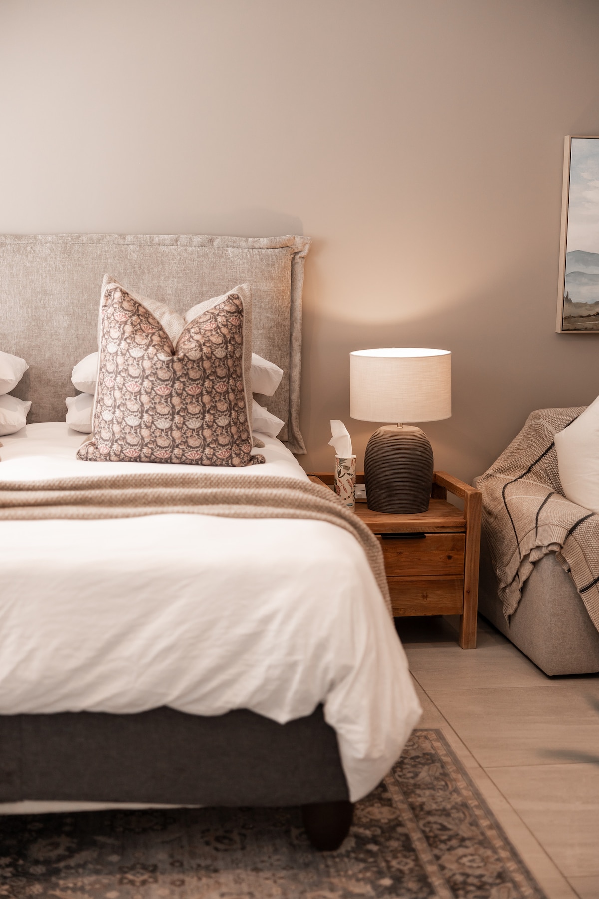 Csodáld meg a lábadat egy fedett, megvilágított étkezőteraszról. Makulátlan, tiszta vonalú, kortárs enteriőr a csúsztatható üvegfalakon keresztül egy nagylelkű, körbefutó teraszra. A fekete és az acélból készült díszítések a szellős fehérneműt, a puha szürkéket és az organikus, földszíneket egészítik ki. Napenergia van. A ház három külön hálószobával rendelkezik, amelyek mindegyike földszinten található En Suite fürdőszobával rendelkezik, és egy kis elülső udvarral rendelkező elektromos kapun keresztül közelíthető meg. A nappalik tágasak és nyitottak, sok fény és szabadtéri hangulat jellemzi őket. Nincs kert, viszont rengeteg szabadtéri hely van, ahonnan hihetetlen kilátás nyílik a hegyre és a völgyre, amit The Moot néven ismernek. Érezd jól magad egy nyugodt, könnyen gondozott helyen. Az egész hely a tiéd lesz! A jó kommunikáció fontos számunkra, és a lehető leggyorsabban válaszolni fogunk. Örömmel válaszolunk az utazással, a látnivalókkal, a felkeresendő helyekkel és a téged érdeklő dolgokkal kapcsolatos kérdésekre. A ház egy meredek felhajtó tetején található a csendes Villieriában, Pretoria egyik legrégebbi környékén. Közel van az autópályához, az egyetemhez, a kórházakhoz, a nagykövetségekhez és a kényelmi szolgáltatásokhoz. Találj üzleteket, kávézókat és éttermeket nem messze innen. Az Uber és a fizetős taxik mellett a közeli Queenswoodban található Webb Streetről indul a Gautrain állomáshoz vezető busz. Az úton mindössze 200 méterre buszjárat és busz érhető el a Gautrain állomásig. Fizetős taxik vagy Uber is rendelkezésre állnak. Az ingatlanban 1 autó számára van lehetőség parkolni. Egy domb tetején található, így egyesek számára kihívást jelenthet autóval eljutni a kocsifelhajtóra. Van egy kétszemélyes garázs, amely közvetlen hozzáféréssel rendelkezik a mosogatógéphez. Az ingatlan biztonságos, zárt térben található, és van riasztó.