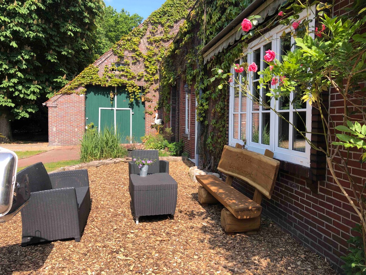 A gyönyörű Frieslandben, az Északi-tenger közvetlen közelében található az idilli Branterei farmkomplexum. A régi fákkal, egy termelői kerttel és egy gyümölcsössel rendelkező ösvényeken található 15000m ² -es farmkomplexum ideális hely a kikapcsolódásra és a megfiatalodásra. A természet szerelmesei nézhetik a szarvasokat, az énekesmadarakat, a ragadozó madarakat, a fecskéket és néha a tokokat a kertben. A régi udvari komplexumba gyönyörűen berendezett lakás 2022-ben teljesen felújított.