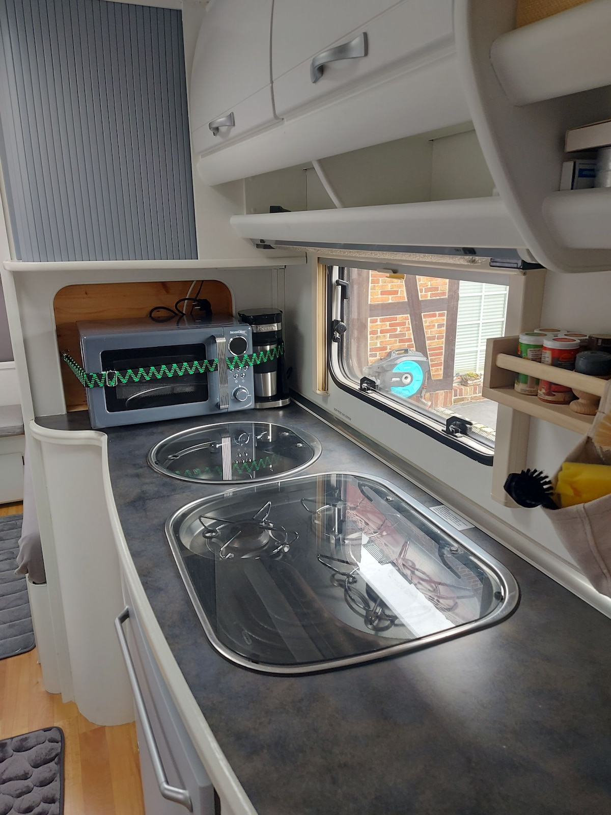 Egy szeretettel modernizált lakókocsi lehet a legközelebbi izgalmas állomásod, ahol felfedezheted Zwenkauer See gyönyörű környékét, felfedezheted Lipcsét, lazíthatsz néhány napig, vagy csak egy rövid pihenőhelyként. A 2x2 m-es ágyon 2 felnőtt és 1-2 gyermek fér el. Kisgyermekek számára leesés elleni védelem szerelhető fel (lásd a fotót). Babaágyat is biztosíthatsz. Az integrált fűtésnek köszönhetően a lakókocsi ősszel és télen is jól felszerelt.