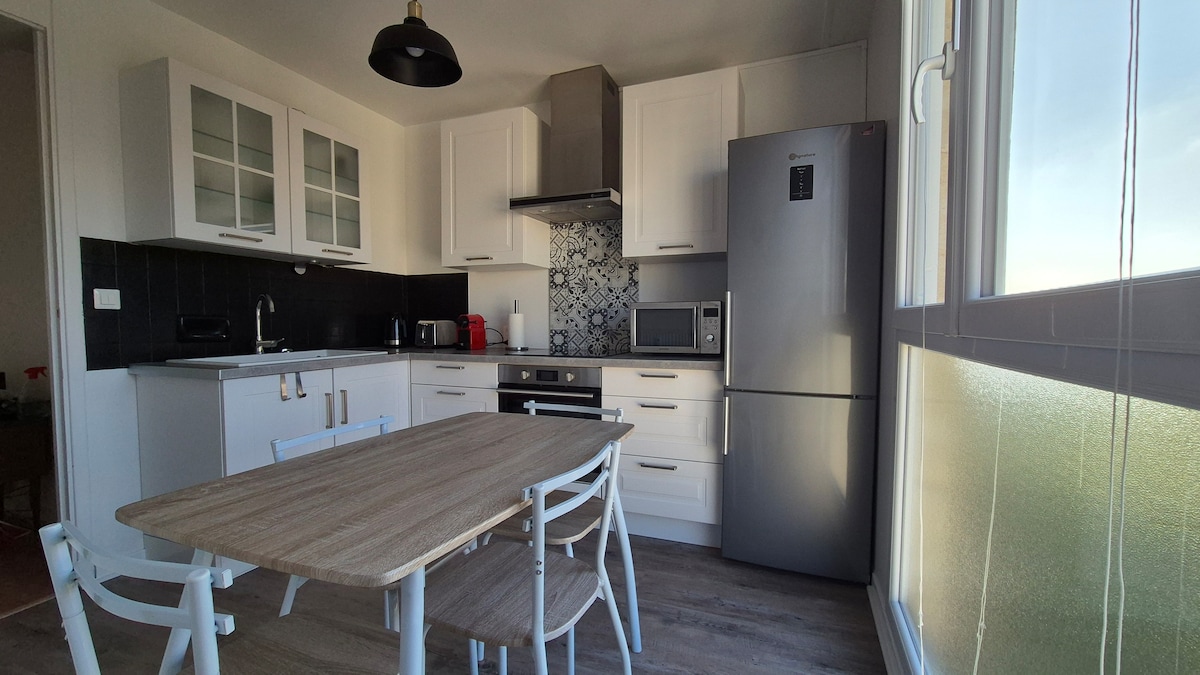 Oissel városának szívében, csendes utcában, 2 perc sétára az üzletektől és 10 perc sétára a vasútállomástól (Paris-Le Havre vonal). 50m² -es függőség 2 szinten (régi istálló), teljesen felújított és 4 fő számára felszerelt. Díszített „skandináv vidék”. Kis privát terasz, de hozzáférést biztosít a közös fitneszterületekhez és gyógyfürdőhöz is. Parkolás zárt udvarban és ferde motorkerékpárhoz és kerékpárhoz.