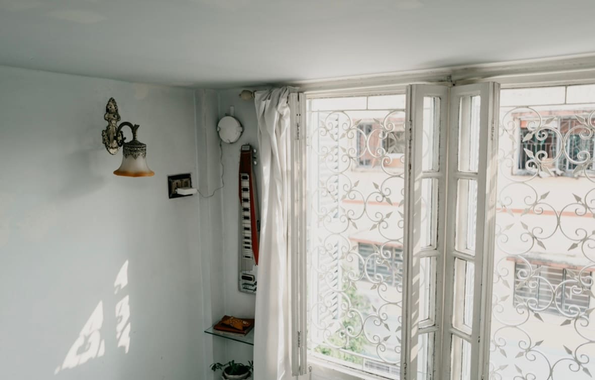 A spacious, sunlit apartment that captures the charm of old Kolkata. The 408 occupies the entire first floor of a lakeside property in Jodhpur Park — one of South Kolkata’s most peaceful neighborhoods. The rooms are large, the ceilings high, and the hall opens to a view of the waterbody where the sun sets every evening. It’s simple, nostalgic, and full of warmth — ideal for guests who appreciate character and space over luxury polish.