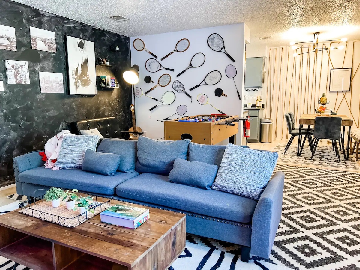 Austin vendégkedvenc Airbnb-szálláshelye! Ez a modern kényelem és egyedi stílus, ez a menedék tökéletes menedék a lazításhoz és Austin felfedezéséhez. Kiemelt témák: •Kisállatbarát: nagy, elkerített udvar •Pihenj jól: új matracok és ágyneműk •Chef's Kitchen: Teljesen felszerelt! •Kültéri élet: fedett étkezőterasz •Munkabarát: nagysebességű, 1 GB-os üvegszálas internet •Természet: Mérföldnyi biztonságos ösvény > 5 perc alatt elérhető •Elsőrangú elhelyezkedés: a legjobb látnivalók a közelben •Tiszta és biztonságos: Makulátlan tisztaság egy csendes környéken