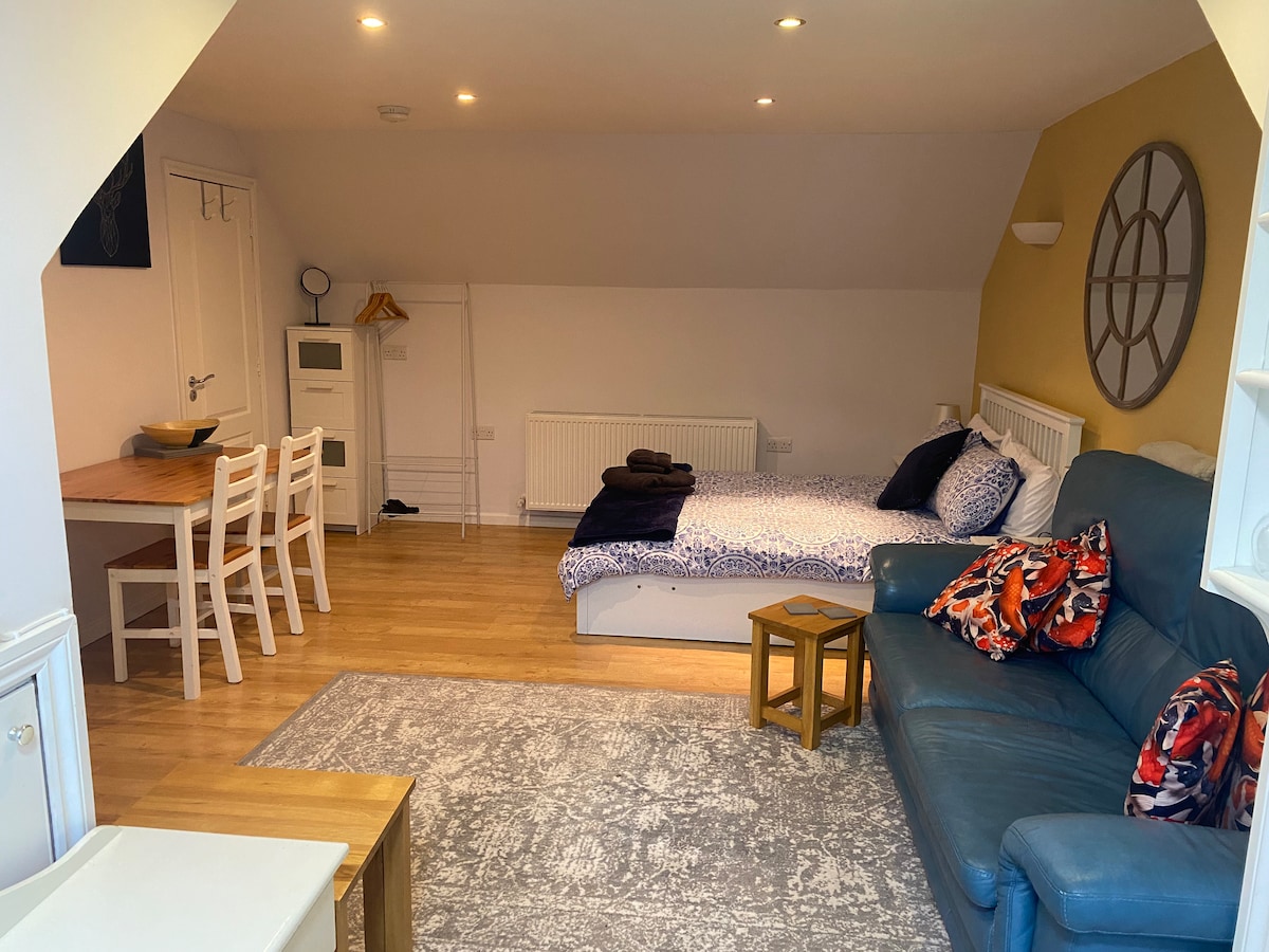 Elbűvölő kerti lakosztály 1 hálószobával, nappalival, teljesen felszerelt konyhával, nagy zuhanyzóval és külön bejárattal. Bőséges, biztonságos parkolás, kilátással a Prestwick Old $ -re, a Prestwick vasútállomás mellett, 2 percre a főutcától, üzletekkel, kávézókkal és bárokkal. 2 perc a tengerpartig, ahonnan lenyűgöző kilátás nyílik az Arran-szigetre. Tökéletes kiindulópont a gyönyörű Ayrshire partvidékre látogatók számára turisták, járókelők és golfosok számára egyaránt - kevesebb mint 45 perc közvetlen vonatútra Glasgow központjáig.