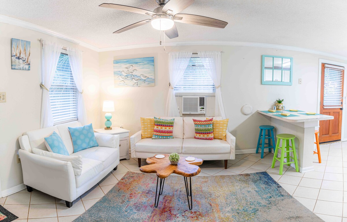 This 1950s happy bungalow is a perfect get-away for a couple or solo traveler. This cheerful little abode features a queen bed, full bath, kitchen as well as a fenced-in front and backyard with a large relaxing pond. The Bungalow is just a 5-minute walk to the beach and a short walk to restaurants & pubs!