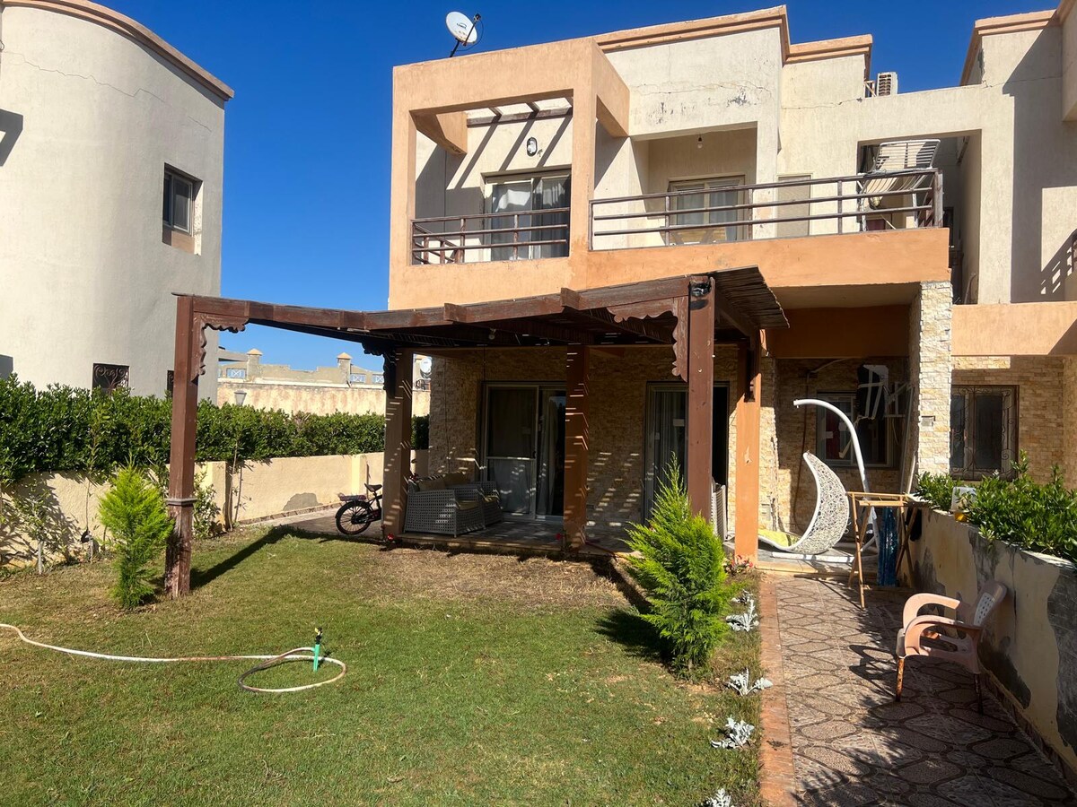 Gyönyörű, stílusos faház kerttel Diamond Beachen. Faház: - 3 szoba 2 nagy ággyal - Nappali kihúzható kanapéval - Amerikai konyha - 2 fürdőszoba - Kerti és grillezőeszközök - Wifi és intelligens TV ** A 3 szoba légkondicionált, a nappali ventilátorokkal van felszerelve ** Diamond Beach Village: - 5 medence - Strand kávézóval - Gyerekek számára fenntartott terület - Billiardo - Pingpong - Play Station - Strandbogár és kerékpárok - KFC - Pizzahut - BIM szupermarket - NBE ATM 15 perc Marina központjától 10 perc Zahranig 25 perc a Stella Walkig