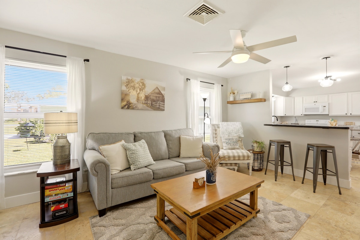 Relax with the whole family at the Waterfront Caloosahatchee Hideaway II ! This CHARMING Farmhouse HOME away from HOME is a 2 Bedroom, 2 Full bathroom, duplex that sleeps 6! Close to Babcock Ranch, Grace River Island Resort, Spring Training Facilities. This home is fully stocked from the kitchen to the linens. The evening sunsets don’t disappoint! We provide fishing poles, paddleboards and kayaks for the adventurous folks. Plenty of blankets, pillows and bedding.