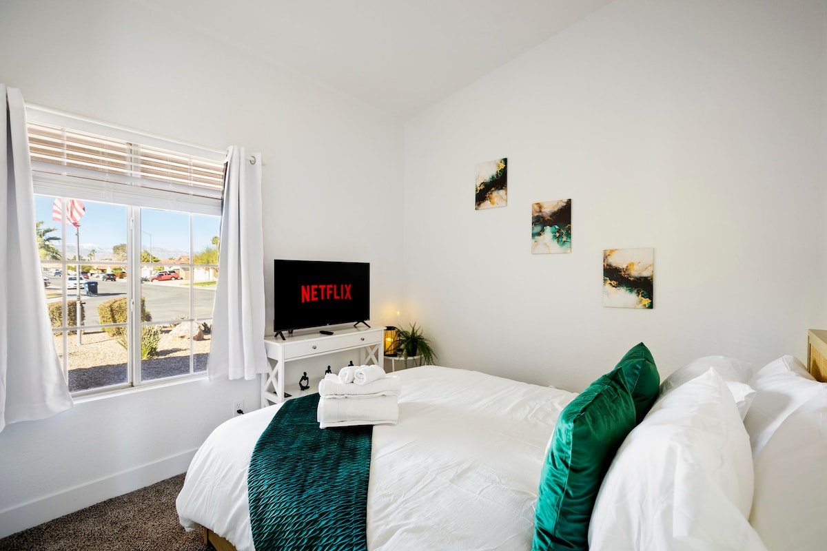 Frissen felújított Las Vegas-i otthon az otthontól távol, üdülőmedencés oázissal, egyedi tűzrakóhellyel, új, modern Clearwater jacuzzival, több mint 100 fúvókával és vízi funkciókkal, ahol pihenhetsz és szórakozhatsz, szabadtéri grillezővel és szórakoztató szabadtéri játékterülettel! Ez a casitával rendelkező családi ház pár percre található a szabadtéri kalandoktól, a sztriptíz izgalmaktól és a kedvelt helyi látványosságoktól. Élvezd a nyugodt, modern bohém stílust átgondolt részletekkel, amelyek kényelmes és emlékezetes tartózkodást biztosítanak.