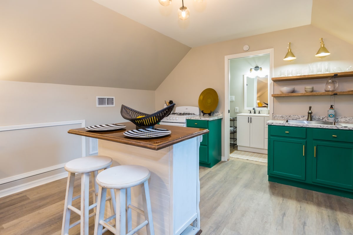 Experience cozy elegance in our 1-bedroom unit, featuring a full kitchen with granite countertops, a plush bed promising restful nights, and a charming living space. Perfect for solo travelers or couples seeking a tranquil escape. If only driving through for the evening, it's a quick 5 minute drive from the interstate--making it easily accessible. Welcome to a piece of our past with all the comforts of home. Your retreat awaits!
