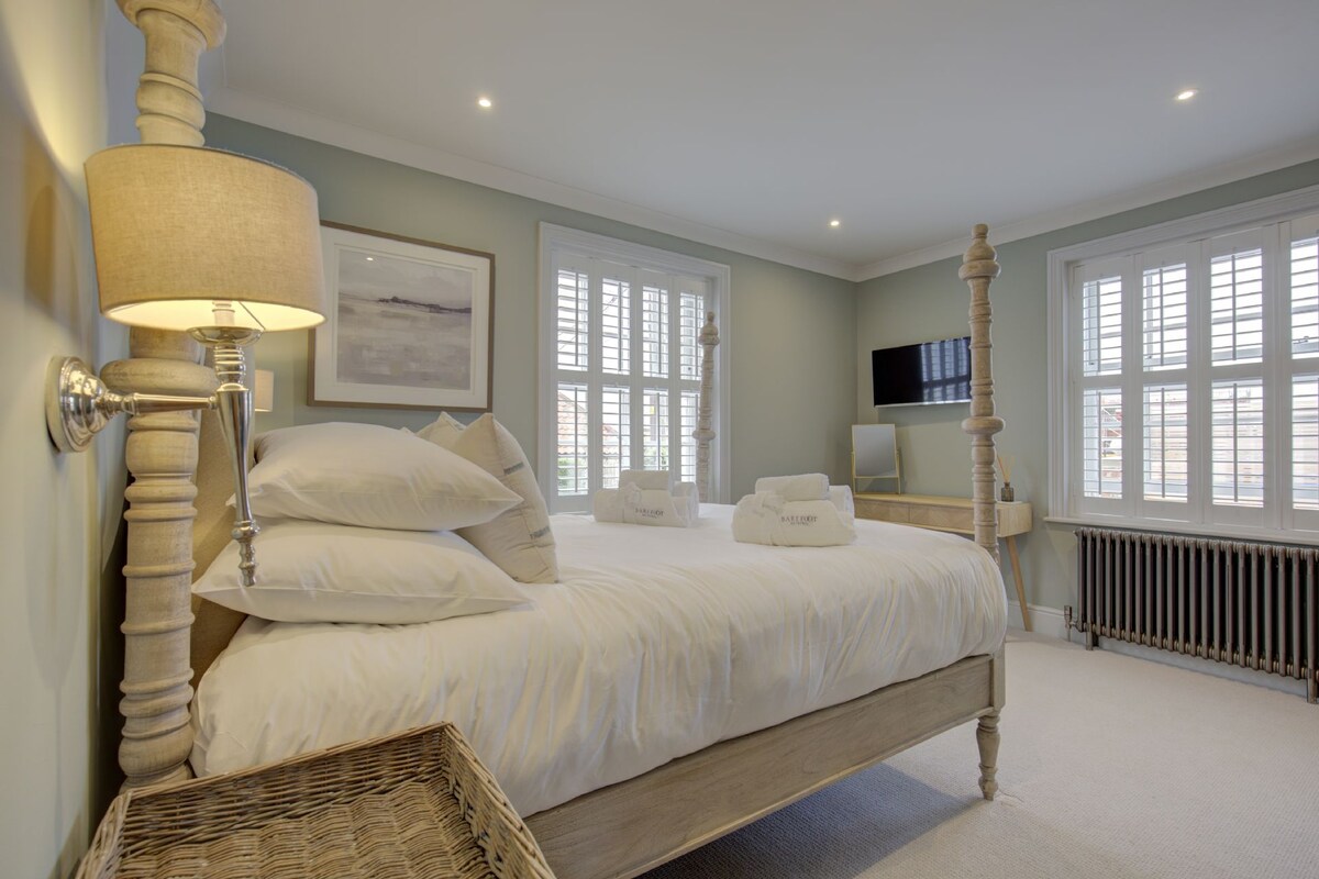 Anna's House in Thornham is the perfect place to escape from the world for a few days. This luxury double bedroom with king size bed on the first floor with a fabulous ensuite bathroom and 'His' and 'Her' shower. Flat panel TV and moody lighting. Gorgeous property close to the beach, nature reserves, lovely upscale pubs and restaurants are just a short walk away as well as artisan shops and specialist food places.