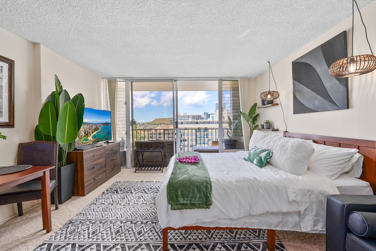 Modern, napfényes stúdió óceánkilátással – Waikiki Beach