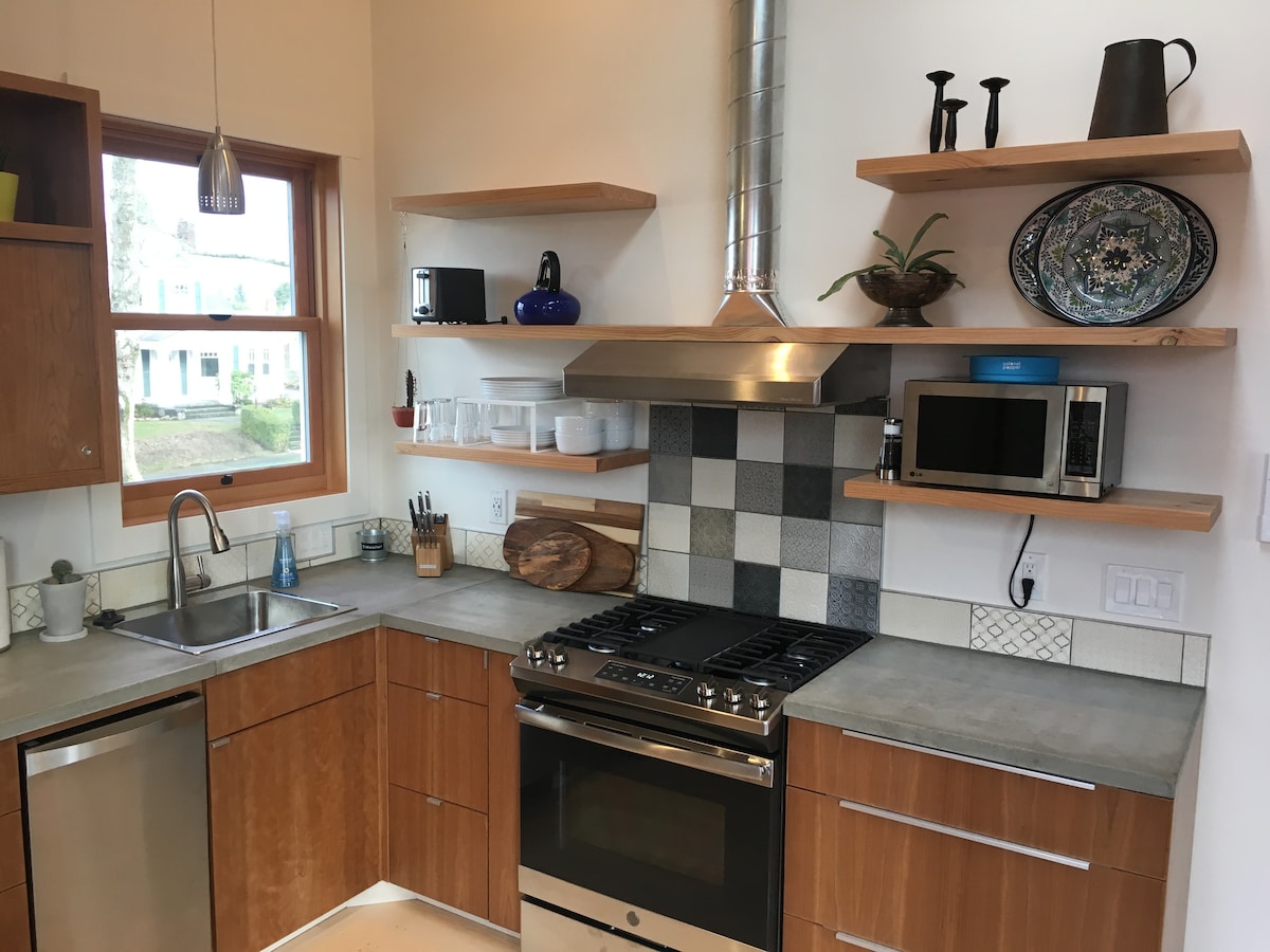 Menekülj el egy bájos vendégházba Portland Alberta Arts District negyedébe, amely tele van éttermekkel, falfestményekkel, kávézókkal, bárokkal, galériákkal és egyedi üzletekkel. Pihenj a saját szállásodon, amely queen méretű ággyal, kihúzható kanapéval, teljesen felszerelt konyhával és nyugodt szabadtéri térrel rendelkezik. A hely a hátsó udvarban található, a főépülettől elkülönítve, így biztosítva a tökéletes magánszférát és nyugalmat. Pihenj és lazíts, és legyen minden, amire szükséged van Portlandben.