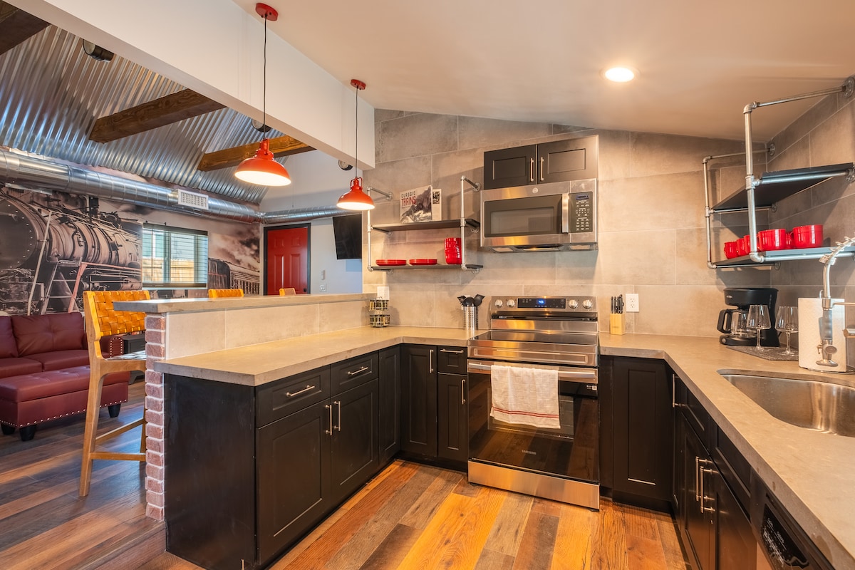 All aboard! Looking for a unique, Downtown Flagstaff stay? Only a 3 minute drive or 10 minute walk to ALL THE ACTION! Minutes from your favorite bars, shops and restaurants!! Need to be close to NAU? Only a mile away! A 25 minute drive to Snowbowl keeps the slopes a short drive away as well! This newly restored beauty was built is 1900 and offers all the history of the original Route 66! Be sure you and your guests enjoy a fire in the fully fenced patio and listen to the trains roll by. ENJOY!!
