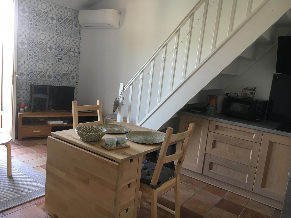 Kiadó lakás éjszakára. Teljesen felszerelt konyha (mikrohullámú sütő, kávéfőző, vízforraló, kenyérpirító, kerámia főzőlapok, hűtőszekrény). A nappaliban, kanapé, TV, wifi. Hálószoba a félemeleten 140x190 ágy biztosított. Fürdőszoba olasz zuhanyzóval és törölközőkkel. Független vécé. Az első reggeli ingyenes. A főbb turisztikai helyszínek közelében leszel. 7 percre Sarlattól , 15 percre Lascaux barlangjától. Kenuzás, kastélyok, gabare séta.