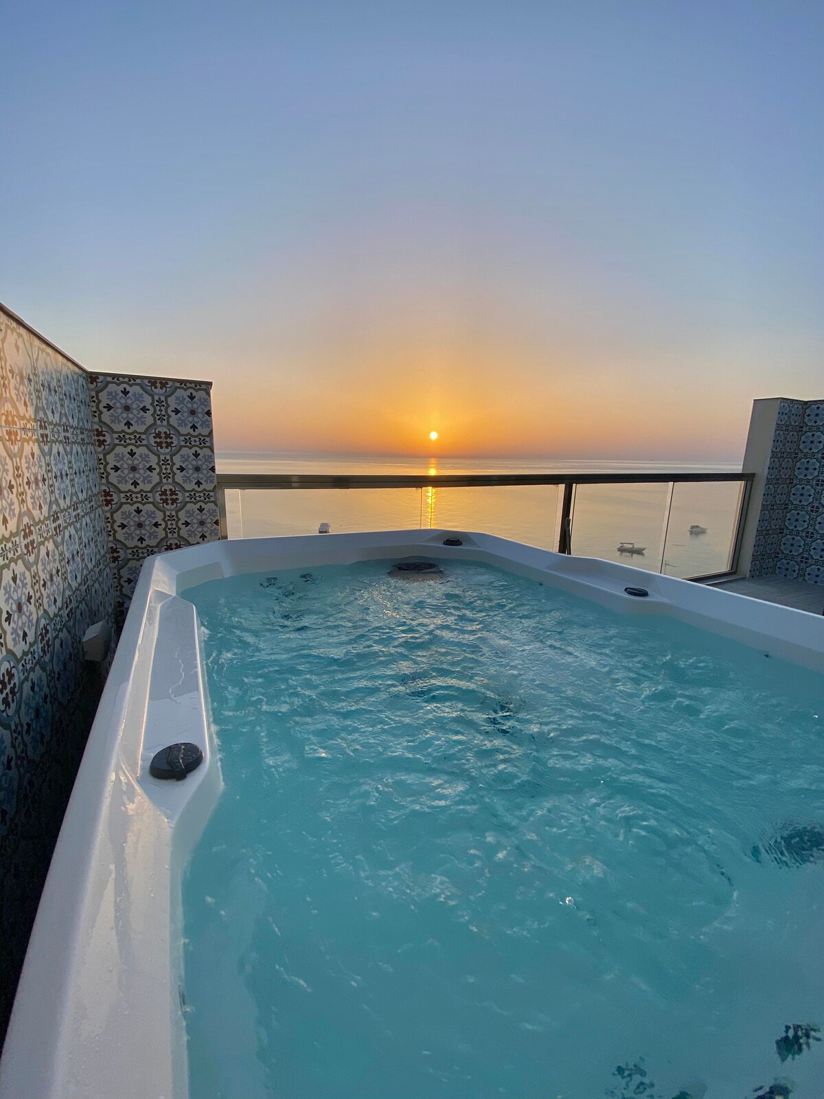 Mesés stúdió/lakás, teraszokkal, medencével és kabinnal.