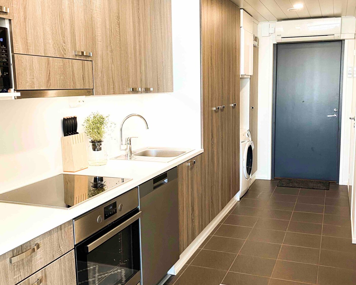 Quiet one-bedroom apartment😊 The apartment features a well-equipped kitchen, living room, separate bedroom, and bathroom. •Bed 120 cm and sofa bed 116 cm •Bed linen and towels included •Heated parking garage park •WiFi free •No washing machine Distance to the city center is 4.5 km by car and 3.7 km on foot. A bus stop, restaurant, and gym are located on the same street. A large K-Supermarket is 600 m away. Nallikari Beach is only 1.5 km away.