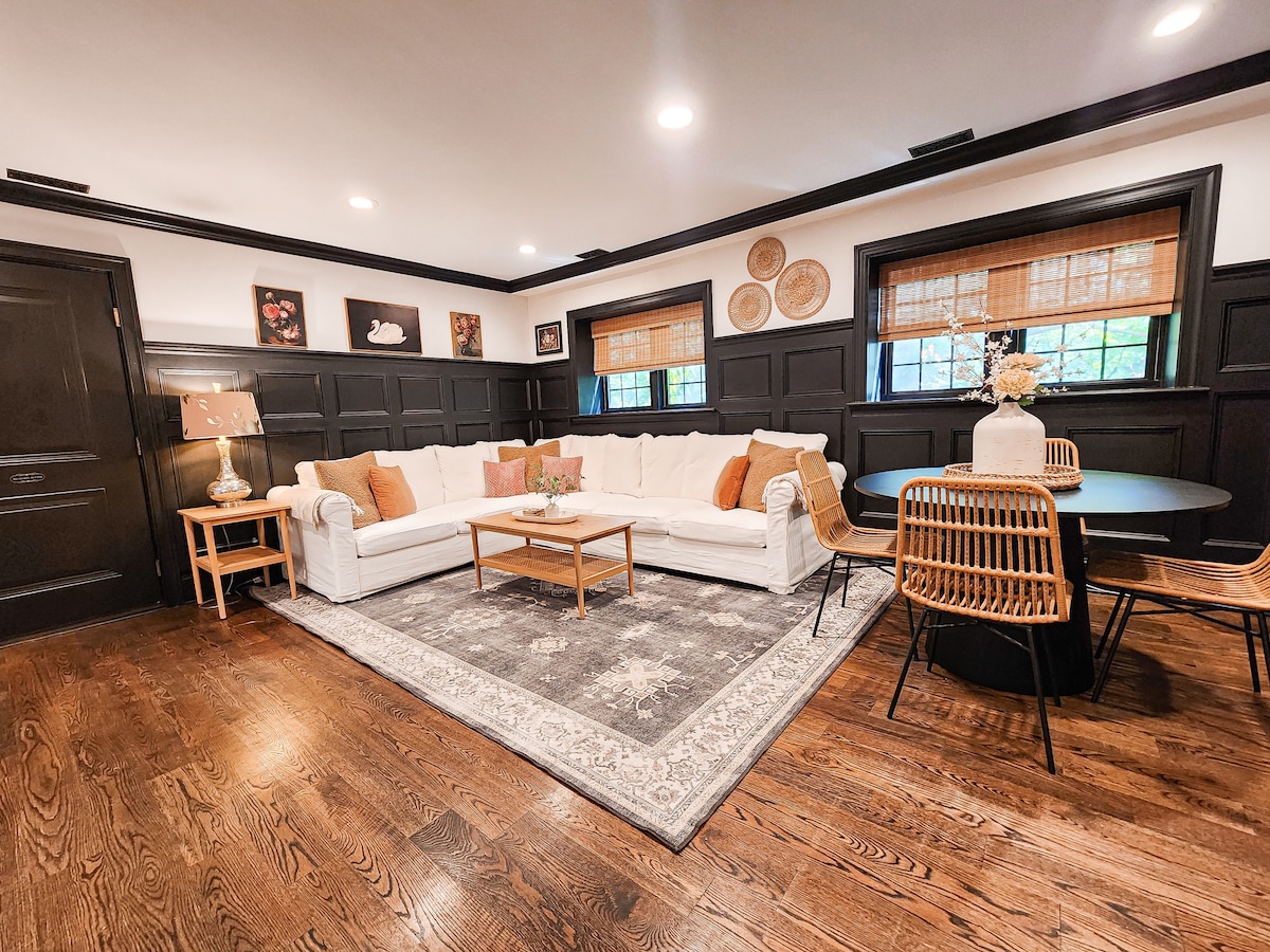 Üdvözlünk modern-retro 1925-ös téglaépületünkben 🏡, ahol a történelmi báj találkozik a merész, dizájner stílusával. Tökéletes csoportoknak, családoknak vagy barátoknak, akik kényelmet, kreativitást és SZÓRAKOZÁST keresnek. 📍 Scott's Addition sörfőzdéi és éttermei közelében 🍻 🎬 Szabadtéri mozi a csillagok alatt 🌌 🏓 Szabványos méretű pickleball-pálya az epikus mérkőzésekhez 🧘 Privát jóga- és fitneszstúdió szőnyegekkel, blokkokkal és súlyzókkal 🔥 Tűzrakóhely a kertben + hinták a hangulatos éjszakákhoz 🚗 Parkolás akár 6–8 autó számára