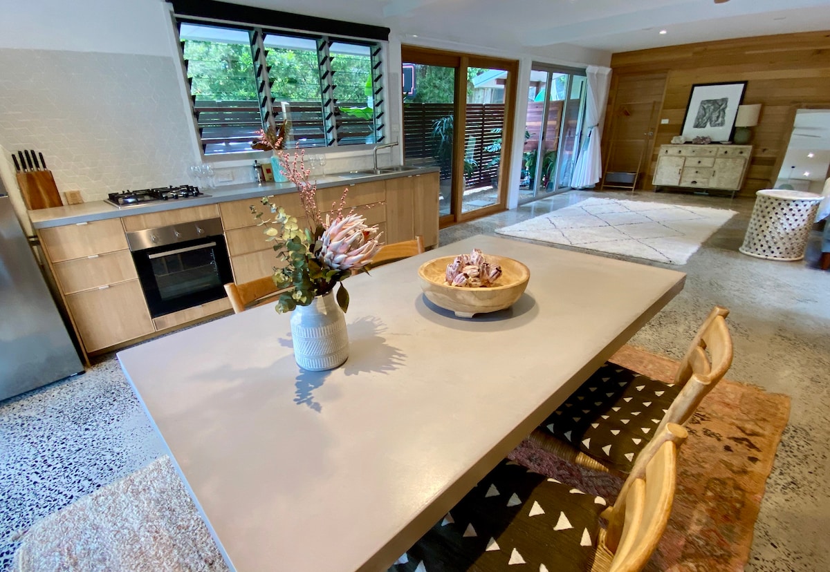 Pihenj a Beach Drift menedékében, a furcsa Brunswick Heads szívében Önálló lakás kiváló minőségű, modern felújítással. 5 csillagos szállodai stílusú matrac és egyedi készítésű tömörfa ágy. A stílusos tengerparti dekoráció a légkondicionált boldogságban inspirálja a kikapcsolódást. Számos minőségi jellemző, például az elegáns, természetes fabútorok, kőpadok, netflix, szűrt ivóvíz és hangulatvilágítás, Parkok, folyó, tengerpart, kávézók, üzletek a közelben. 35 perc a repülőterektől.