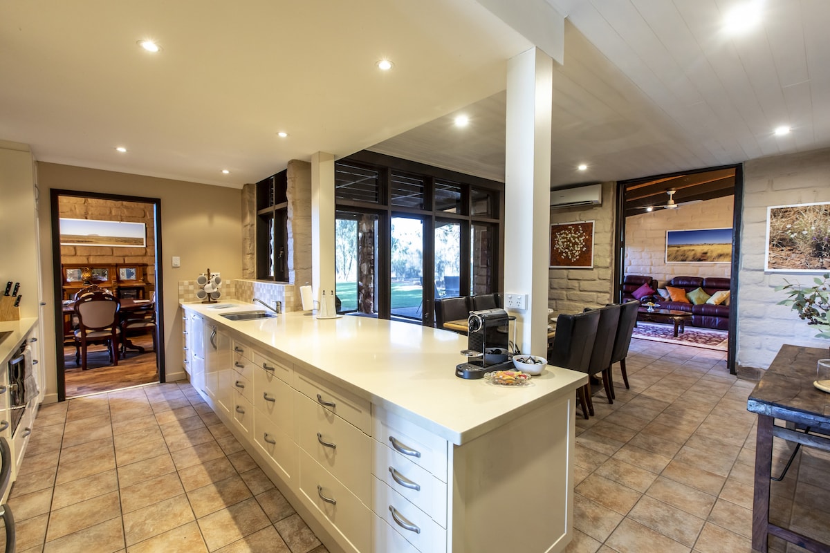 Menekülj el egy nyugodt menedékhelyre a MacDonnell-hegységben, mindössze 10 percre Alice Springs-től, Ilparpa csendes vidéki szomszédságában. Ez a vadonatúj, egy hálószobás ház luxust és magánéletet kínál, amely tökéletes egy pár kiruccanásához vagy üzleti útjához. Élvezd a lenyűgöző kilátást, a hangulatos tűzrakóhelyet és a közeli sétautakat. Békés környezetével és modern, csúcskategóriás kényelmi szolgáltatásaival tökéletes hely a pihenésre és kikapcsolódásra.