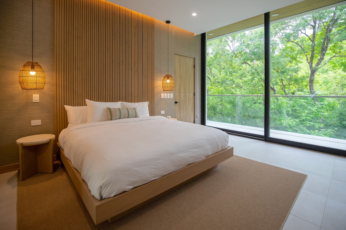 Welcome to Casa Within. Nestled within the brand new exclusive Become Nosara Community! This newly-built condominium welcomes you to experience the perfect mixture of the jungle life with the comfort of the modern world. Wake up to the beautiful trees and jungle right from the comfort of your bed. This unit boasts 1 king-size bed and 2 queen beds, comfortably accommodating up to 6 guests. Cook in the fully equipped kitchen with Jungle Views, or sit on your private balcony overlooking Nature.