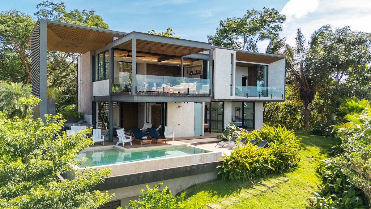 Casa Cresta Pelada - egy luxusvilla Playa Pelada déli részén. Élvezd a dzsungelre nyíló kilátást, a 2020-ban épült és 2024 októberében felújított, tágas otthont. Kiváló elhelyezkedés, amely könnyű hozzáférést biztosít a Pelada és Guiones strandjaihoz. 5 perc sétára a Pelada strandjaitól és a La Luna tengerparti/naplementei éttermeitől. Guiones híres hullámai mindössze 10-15 perces sétával elérhetők. Tapasztald meg Pelada nyugalmát, miközben kényelmesen közel vagy Guiones akciójához. Könnyen megközelíthető a Pelada számos új üzlete és étterme.