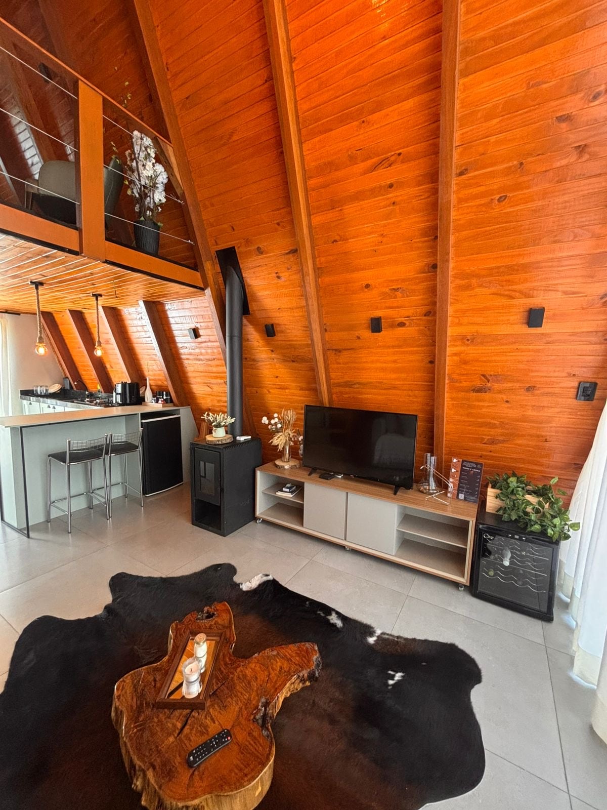 Nosso chalé está localizado no topo de um morro, cercado por árvores e com uma vista ampla para um vale encantador, montanhas e paisagens que mudam a cada momento do dia. • Hidromassagem aquecida no deck com vista para o vale • Chalé com frente de vidro e vista privilegiada do nascer do sol • Lareira interna e firepit externo • Wi-Fi de fibra óptica (200MB) • TV 4K com Netflix e diversos aplicativos • Cozinha completa para preparar refeições