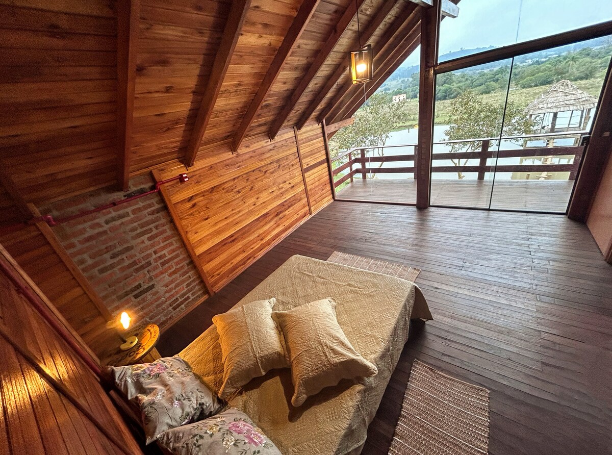 Relaxe neste espaço tranquilo e aconchegante, que conta com ar-condicionado, hidromassagem e calefator. Localizado em uma área rural junto a natureza, com uma linda vista do lago e araucárias. Distante 6 km do centro da cidade. O espaço O chalé foi feito com muito carinho, tudo planejado para ser aconchegante e prático. Oferecemos possibilidade de refeições para nossos hóspedes. Solicite o menu no check in. Acesso do hóspede Os hóspedes tem livre acesso pela propriedade.