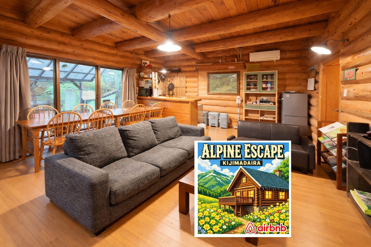 ②カナダ材丸太の本格ログハウス/Wi-Fi完備/貸別荘/10名迄