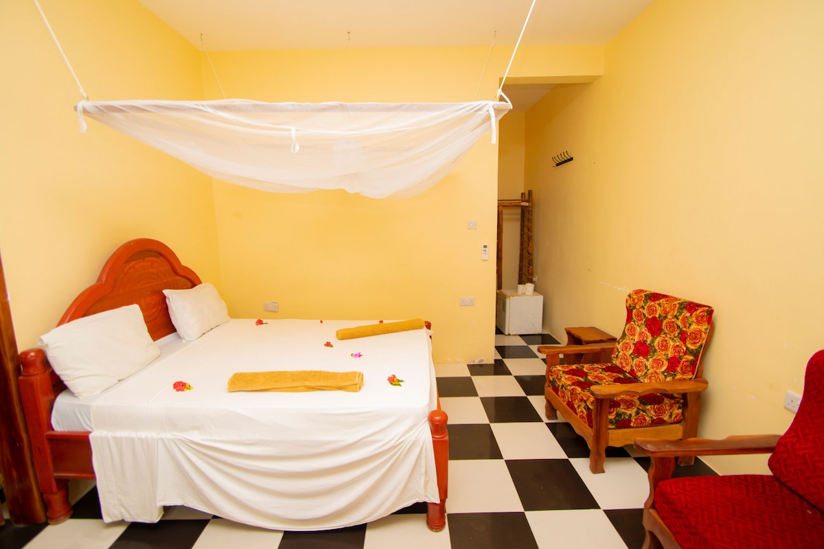 Welcome to Apartments3 Zanz JJ — your cozy hideaway in the heart of Nungwi. Here you’ll enjoy cool air-conditioned comfort, your own private kitchen, and a charming terrace surrounded by a lush tropical garden. The atmosphere is peaceful, relaxed, and full of that authentic Zanzibar vibe — with spacious rooms designed in traditional style. Just 7 minutes you’ll reach the white Royal Beach, where soft sand meets a clear turquoise ocean. Cafés, restaurants, and beach bars are all close by.