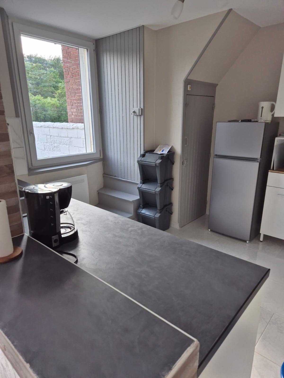 Rezidencia parkolóval (zárva 10 és 6 óra között, hozzáférés kóddal). Nappali/konyha: 2 személyes nyitható kanapé, TV, Wifi, elektromos sütő, városi gáz tányér, vízforraló, Senseo kávéfőző, mikrohullámú sütő, edények 4 fő részére. Hálószoba 1: franciaágy 140x190 minőségi matrac, szekrény. Zuhanyzó: zuhanyzó, mosdó, WC, mosógép. (a fürdőszobába való bejutás az 1. hálószobán keresztül történik). Mezzanine room (under slope): bed 1 place. Meredek lépcsőházzal közelíthető meg. Csatlakoztatott kulcsszéf.