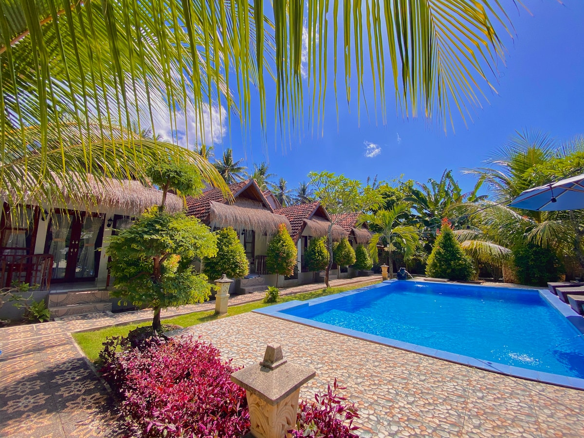 Mindössze 5-10 perc sétára a Banjar Nyuh kikötőtől – nincs szükség taxira! Élvezd a tiszta szobákat erős légkondicionálóval, meleg vízzel, valamint ingyenes kávéval/teával egész nap. A rendkívül segítőkész házigazdáink mindenben segítenek: hajójegyek, robogóbérlés, snorkelezés – mindezt a helyszínen intézik. Extra előnyök: + ingyenes kikötői kiszállítás robogóval, + poggyászmegőrzés, és + ingyenes ivóvíz újratöltés. Természetes helyi hangulat – füldugó is van, ha kell!