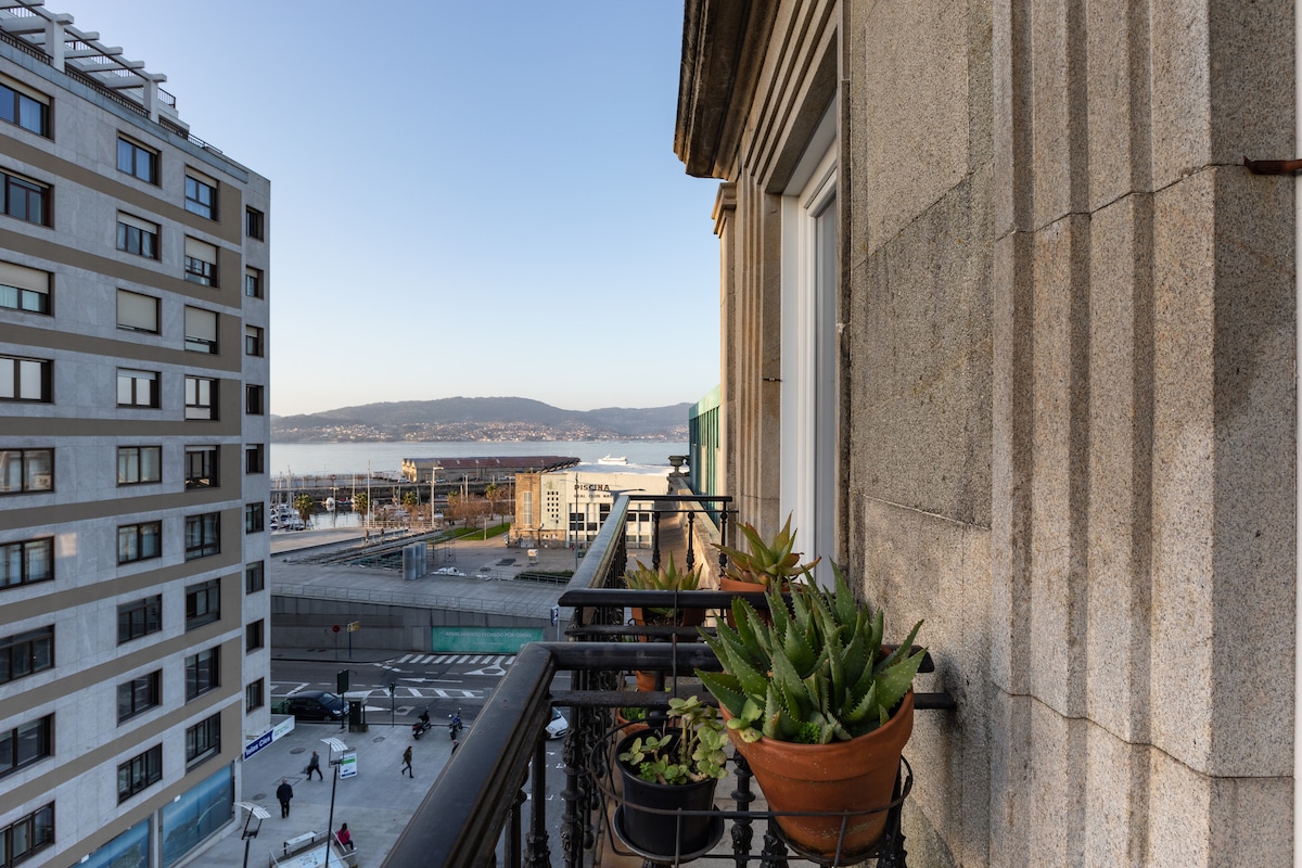 Vigo turistaközpontjában található Tágas lakás, nagyon világos és napos, két erkéllyel és verhetetlen kilátással a torkolatra Minden kényelemmel Előnye, hogy a hálószobák hátulra néznek, így nagyon nyugodtan pihensz A Maritime Station, hogy elérd a Las Cíes hajót, amikor elhagyod a portált az utca túloldalán.