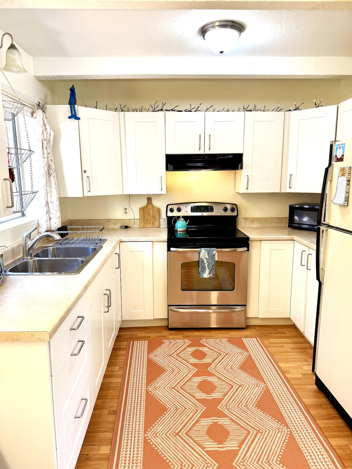 If you looking for a tranquil place in Sedona near downtown, then look no further. Close to restaurants, grocery stores, hiking, biking, shopping, parks and so much more. The neighborhood is very quiet and nice. Dogs and cats love the area as well! In the master bedroom you’ll see a king bed. The bathroom is just around the corner. There is a wonderful kitchen with everything you’ll need to cook a meal. The living room is amazing! The couch is so comfy especially next to the fireplace!