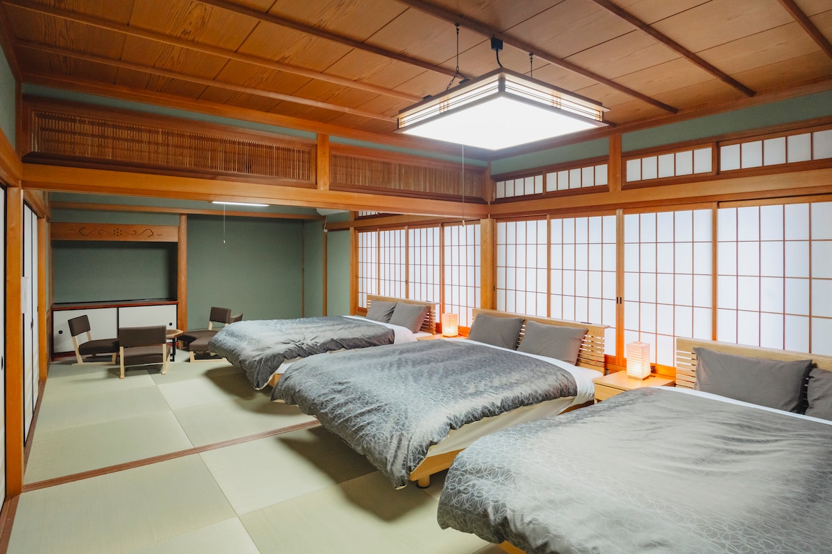 Tapasztald meg a hagyományos japán vendégszeretetet a modern kényelmi szolgáltatásokkal. Tsuzumi és Christian üdvözölnek titeket a gyönyörűen felújított, 150 éves hagyományos japán otthonukban, amely a festői szépségű Kameoka faluban található, 25 percre Kiotótól . A Hozugawa kudari indulása 5 percre van a háztól, a Torokko vasútállomástól 5 percre, az Arasijama pedig 10 percre van vonattal. Az árak reggelivel történnek. Számos elérhető élményprogram megkérdez minket.