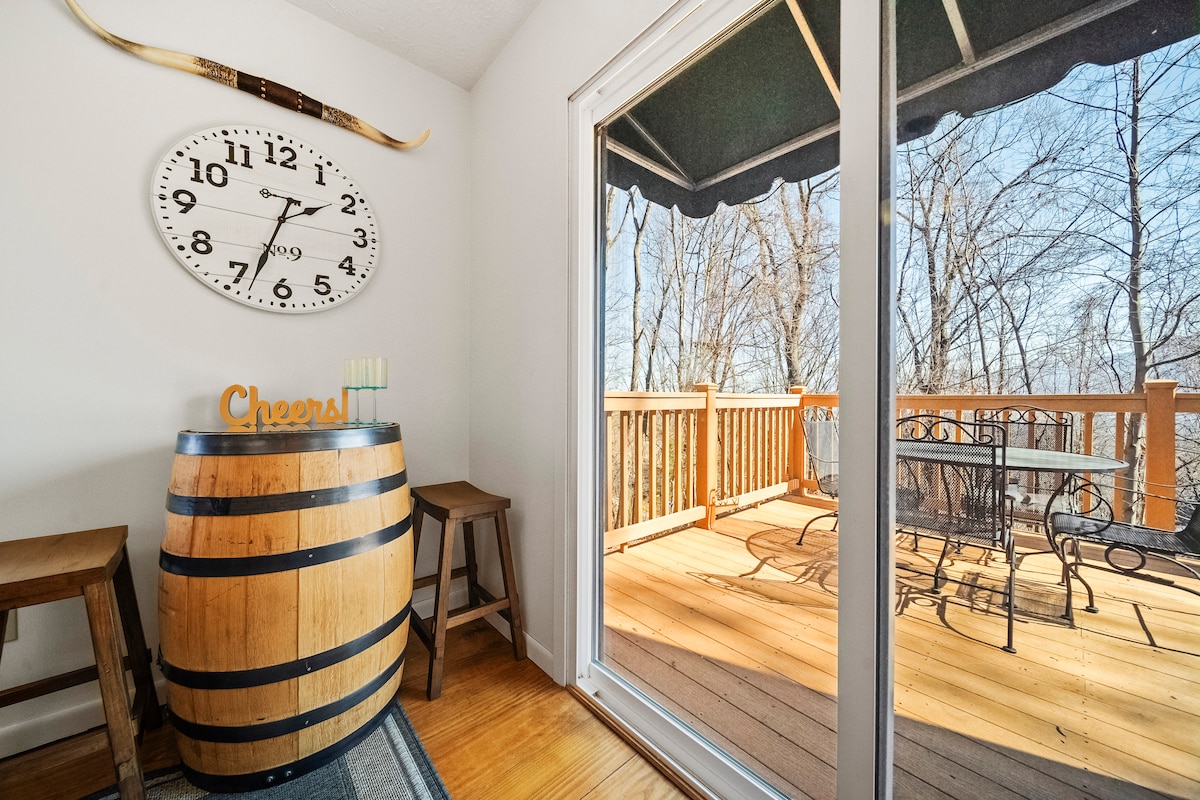 Itt gyakran láthatók fekete medvék! Felújított, 4 hálószobás, modern faházunk fantasztikus helyen, a Chalet Village-ben, közvetlenül a Ski Mountain Road mellett található. Mindössze fél mérföldre leszel Ober városától, és kevesebb mint 10 percre Gatlinburg belvárosától, a Nemzeti Parktól és a Pigeon Forge-tól. Ez a háromemeletes otthon ideális családok, barátok vagy párok számára. A gyerekek imádni fogják az emeletes ágyakat és a mindent egyben kínáló videojátékot! A szülők imádni fogják, hogy a gyerekek magukra maradhatnak az alagsorban! Már nagyon várjuk, hogy vendégül láthassunk!
