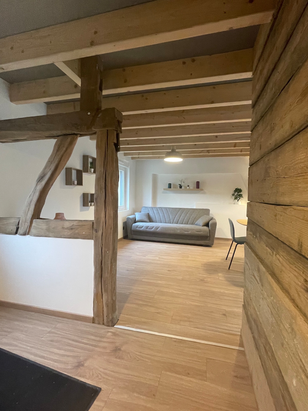 Üdvözlünk az 1820-as évekből származó, teljesen felújított, régi, fagerendás házban, amely ötvözi a hitelességet és a modernitást. Ez az otthon két hálószobából áll, köztük egy irodaterülettel, egy fürdőszobával, valamint egy gyönyörű nappaliból és felszerelt konyhából. A ház saját külsővel és közvetlen hozzáféréssel rendelkezik egy privát teraszhoz. Az udvar könnyen parkolható. Garázs is biztosítható.