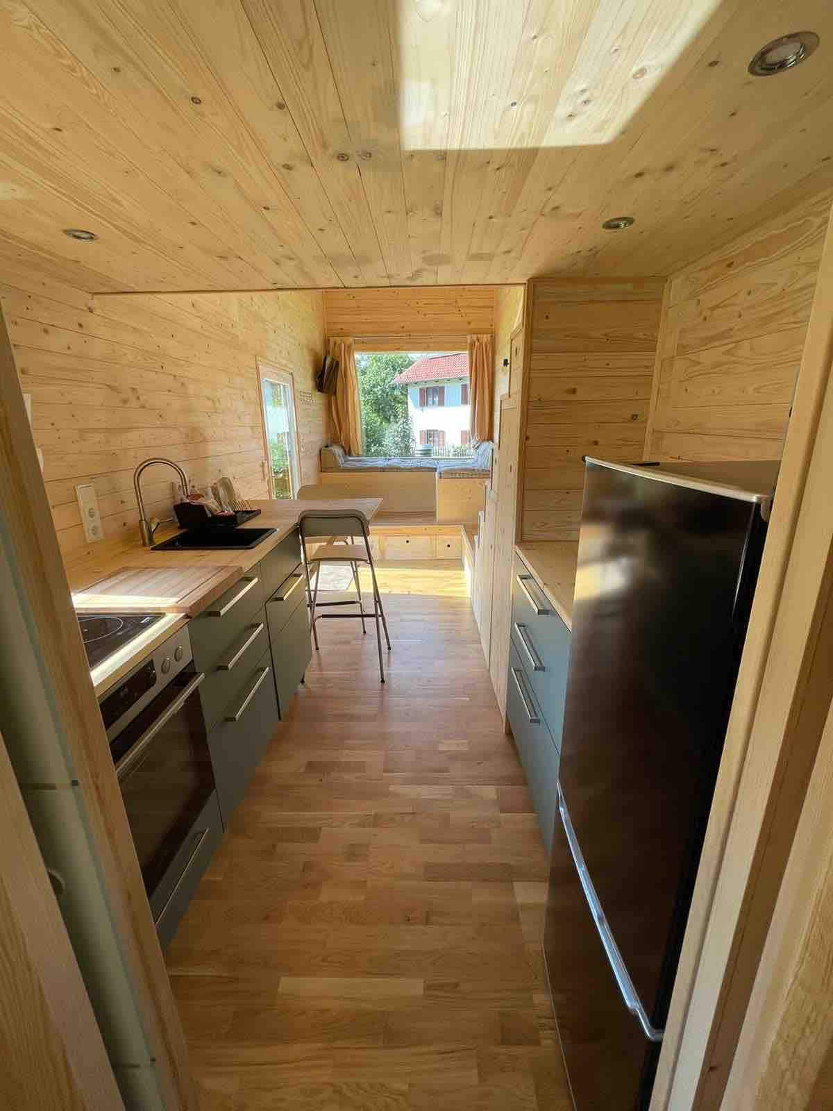Ez a csodálatos szálláshely minden, csak nem hétköznapi. A fa dominál, a vörösfenyő kívülről, belül lucfenyő, a saját terveinknek megfelelően sok szeretettel épült. 2 ember mindent megtalál, amire szüksége van egy kis helyen való pihenéshez. Ennek ellenére minden, amire szükséged van: konyha indukciós főzőlappal és sütővel, nagy hűtőszekrény, kávéfőző... A fürdőszobában vécé, mosdó és zuhanyzó található. Természetesen van meleg víz és fűtés! Néhány lépcső vezet fel az 1,60 m széles ágyhoz.