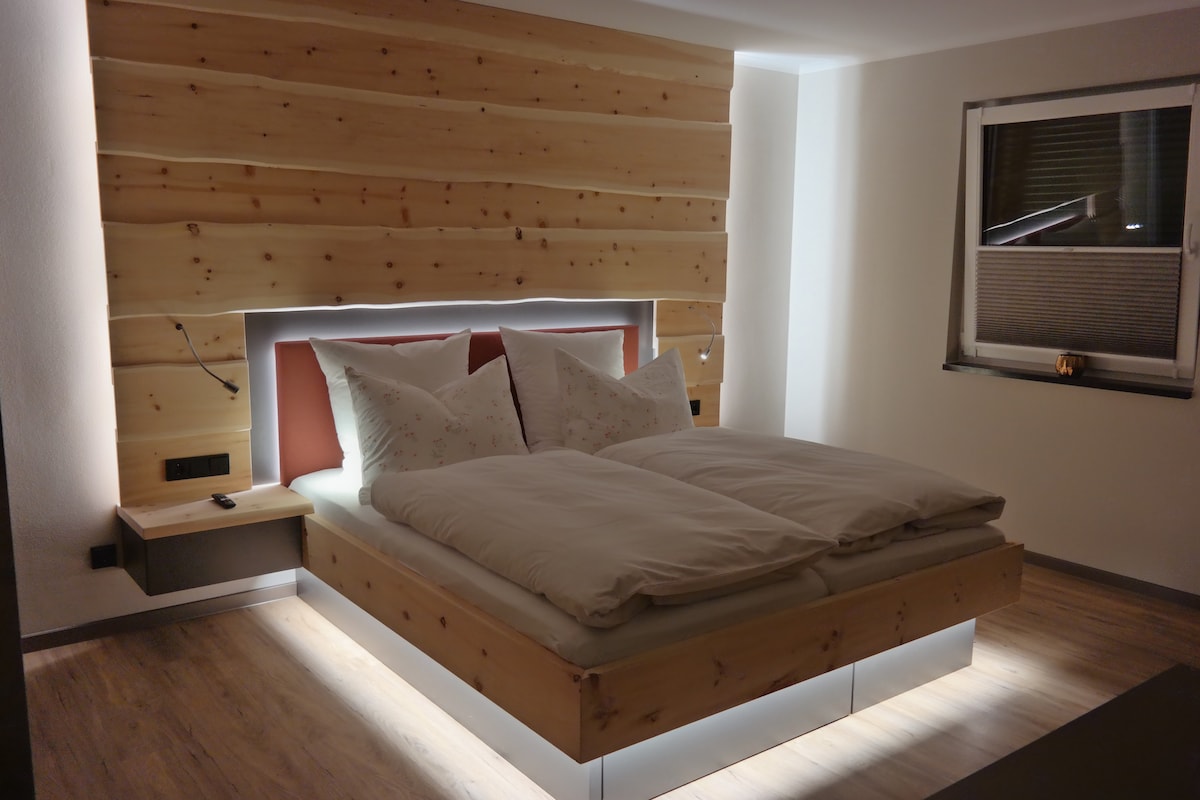 A „hayloft” különösen tágas, 120 m² -es lakóterülettel, és egy kis luxust kínál saját wellnessrészleggel. A szaunázás után pihenhetsz zenével egy fürdő mellett. A fitnesz szerelmesei megtalálják a WaterRower evezőgépet. A Multimédiás szórakozás kiváló minőségű OLED TV-vel és lemezjátszóval rendelkezik, beleértve a bakelitgyűjteményt is. A szeretetteljes részletek nagyszerűek a felfedezéséhez. Közvetlenül a Dorfbachon található, és velünk együtt pihenhetsz.