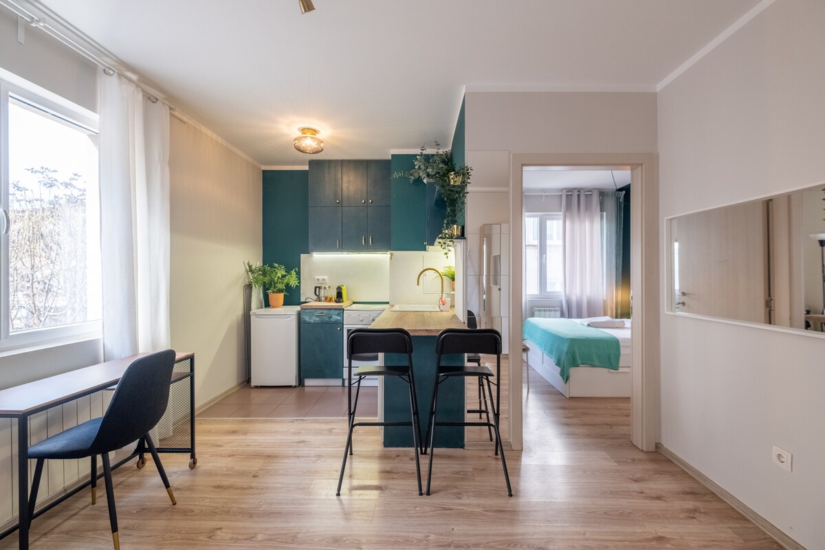 Make your self at home at my place! A brand new open plan, spacious flat located in one of the most beautiful and green neighbourhoods in downtown Sofia. Away from all the hustle and bustle of the centre it is set conveniently between the Centre, Sofia Airport and Central Railway Station with good transport links. With an artistic design and all amenities for a comfortable stay, this flat is ideal for both family and business travellers. The building comes with 24/7 security for you comfort.